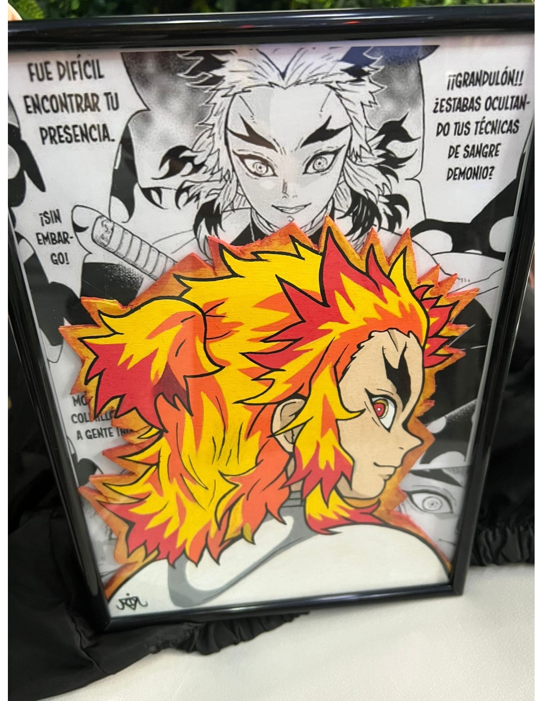 Cuadro de Madera Recortado Efecto Relieve Rengoku Kimetsu no Yaiba