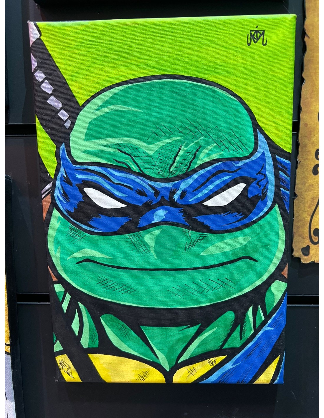 Lienzo pintado a mano de Leonardo de las famosas Tortugas Ninja.