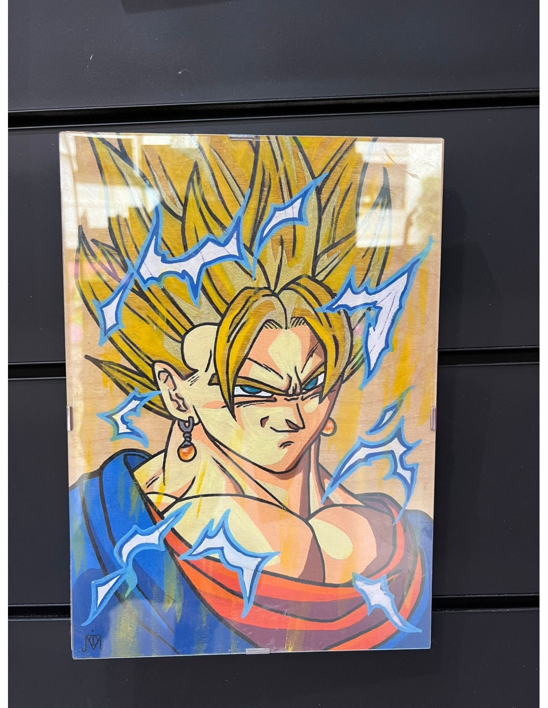 Cuadro de madera pintado a mano de Goku Super Saiyan del famoso anime y manga Dragon Ball.