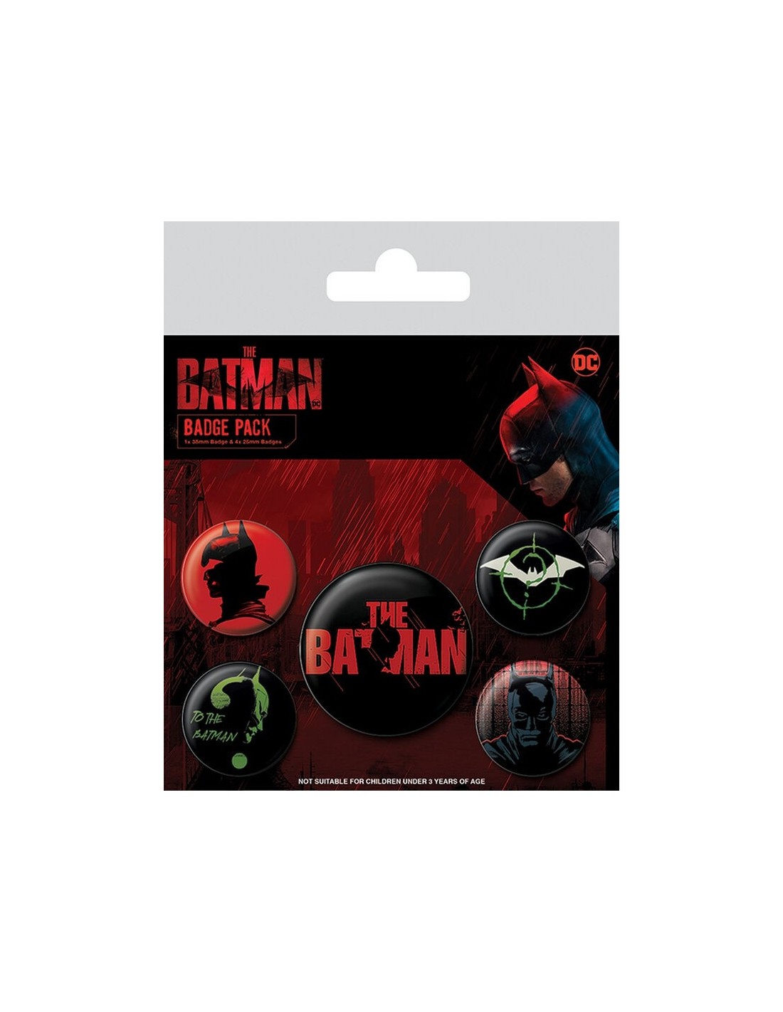 PYRAMID - Pack de chapas Warner The Batman. Tamaño: 10 x 12,5 cm. Incluye 4 chapas pequeñas (2,6 cm diámetro) y una grande (3,8 cm diámetro).