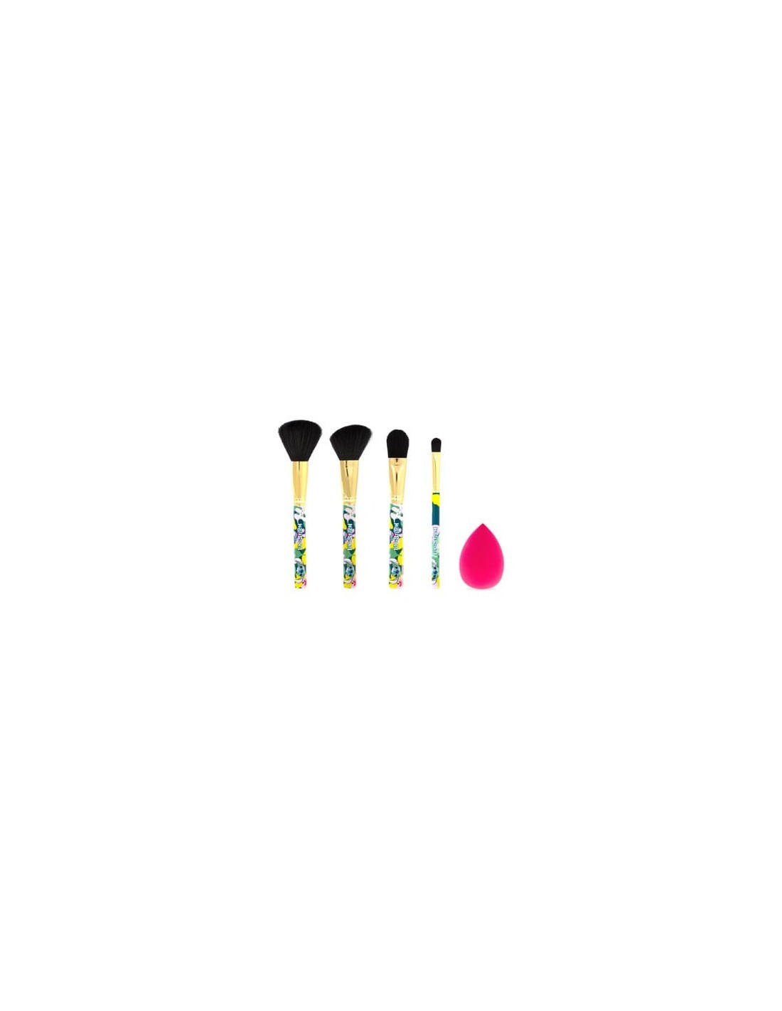 Set de Brochas de Maquillaje que viene con tres brochas de rostro y una para ojos y una esponja de maquillaje. Las brochas tienen un mango con detalles de Stitch.