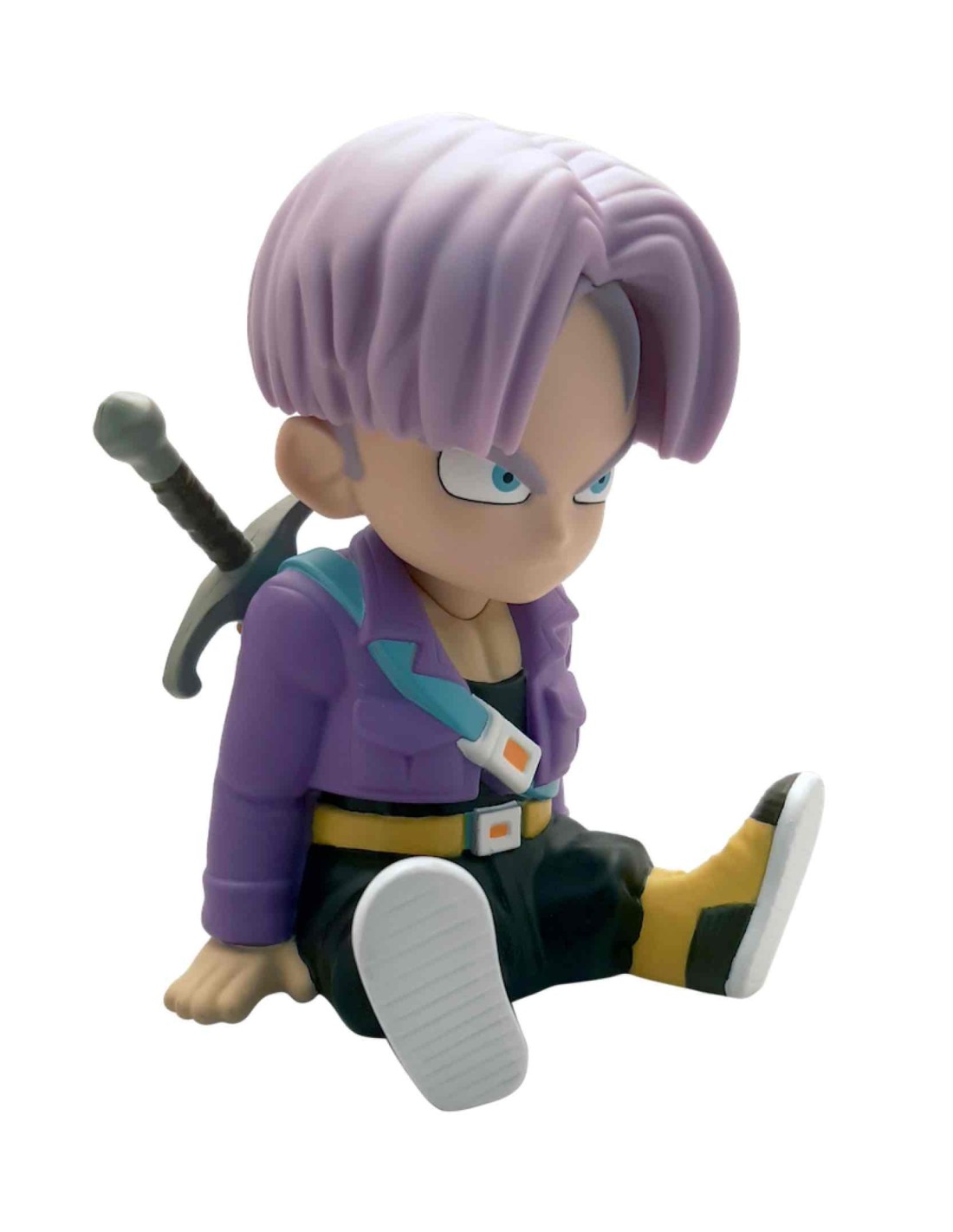 Plastoy presenta esta vistosa hucha en PVC dentro de su colección de figuras basadas en famosos personajes del mundo de la fantasía, el comic y la leyenda. En este caso, presenta la hucha de 15 cm de Trunks, personaje de la popular serie de anime "Dragon Ball", en su versión Chibi.