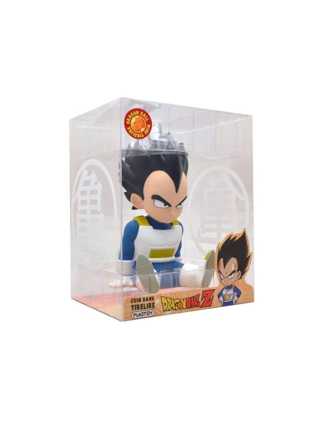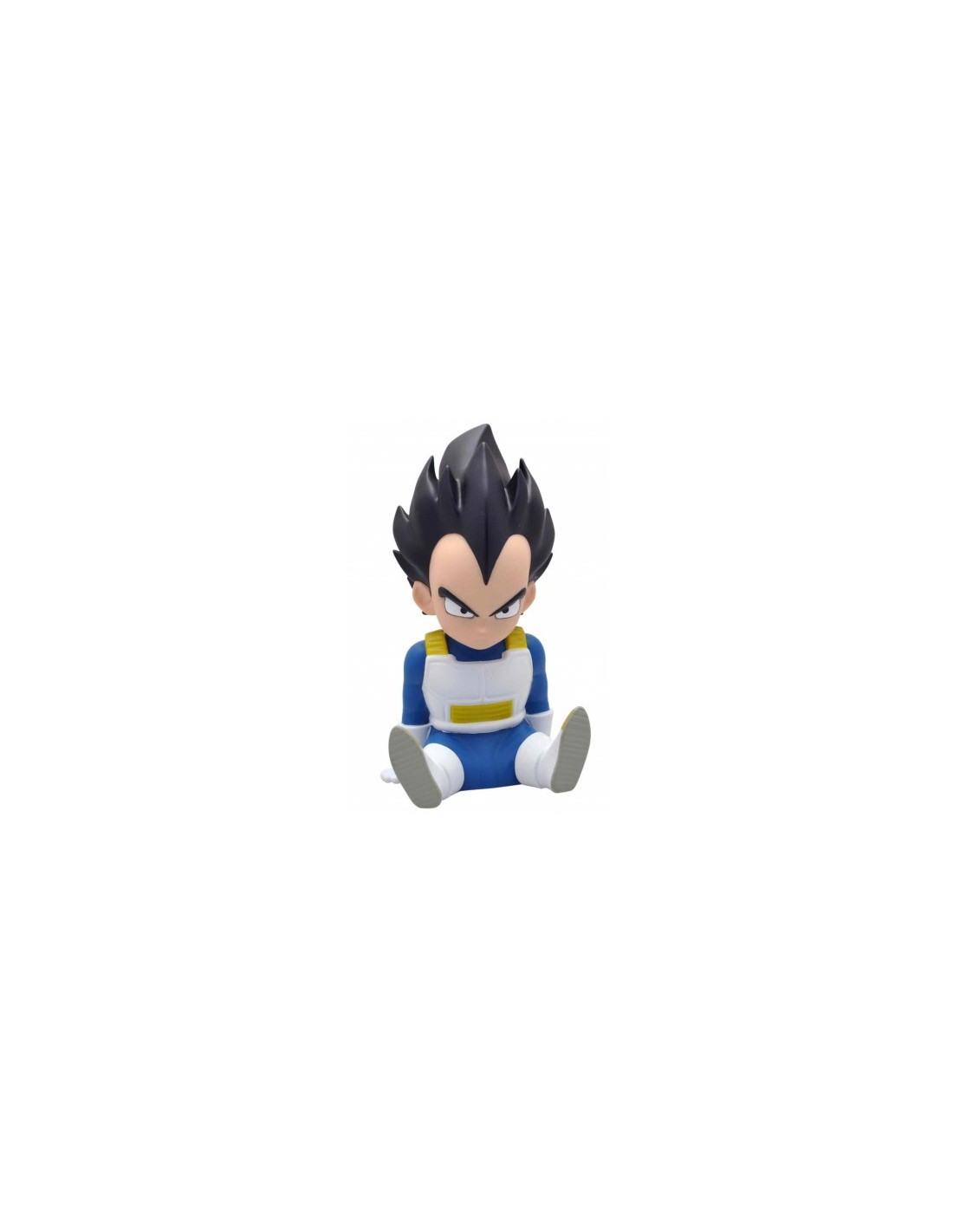 Esta hucha es también una estupenda figura de Vegeta, personaje imprescindible de Dragon Ball, con todos los detallitos que captan perfectamente la esencia del personaje, sentado pero dispuesto a luchar contra aquel que intente robarte tu dinero. Está fabricado en Pvc de la mejor calidad y tiene un tamaño de unos 15 cm.