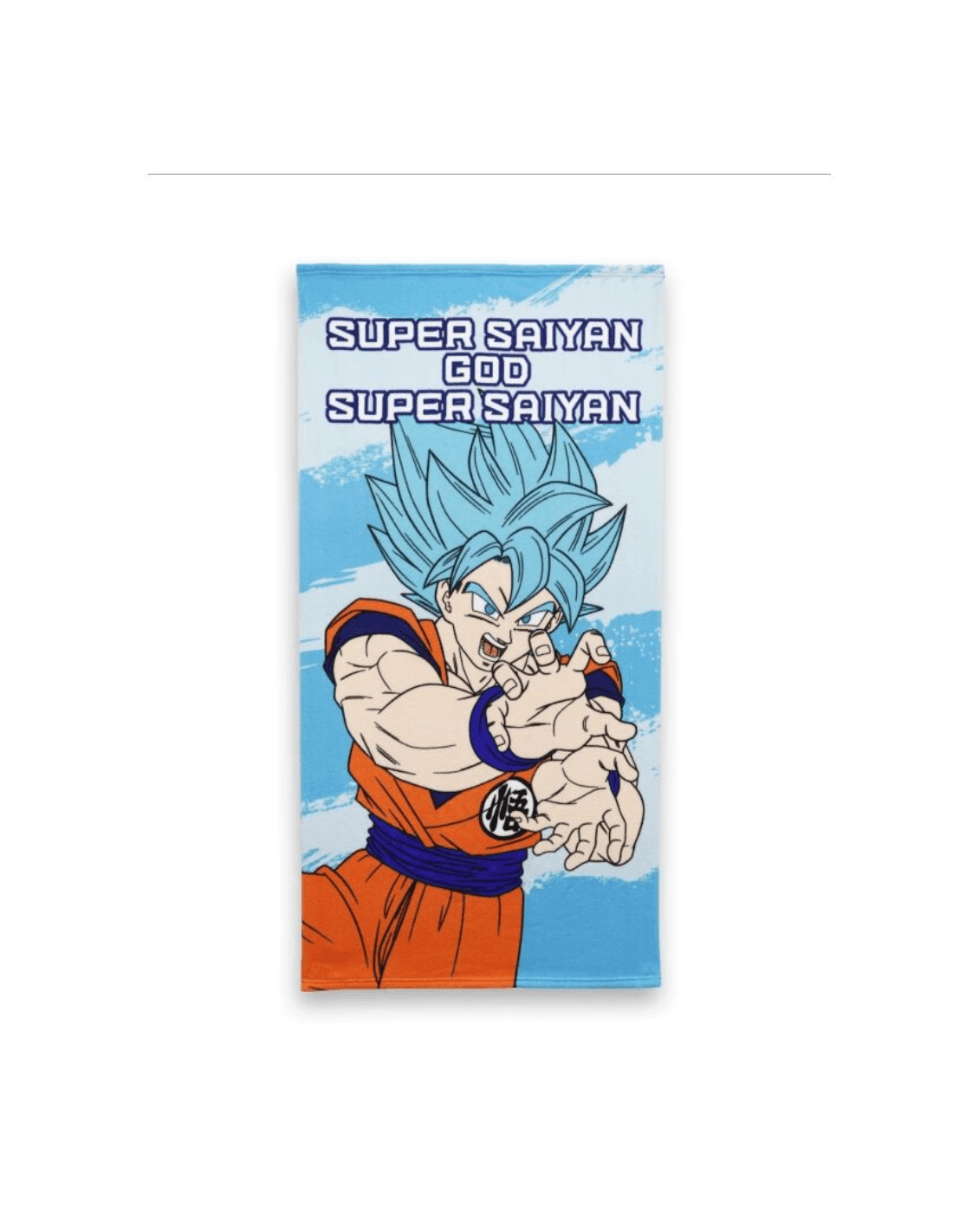 Toalla Goku Super Saiyan Blue talla única, medidas 140 x 70 x 0,1 cm. Composición microfibra.