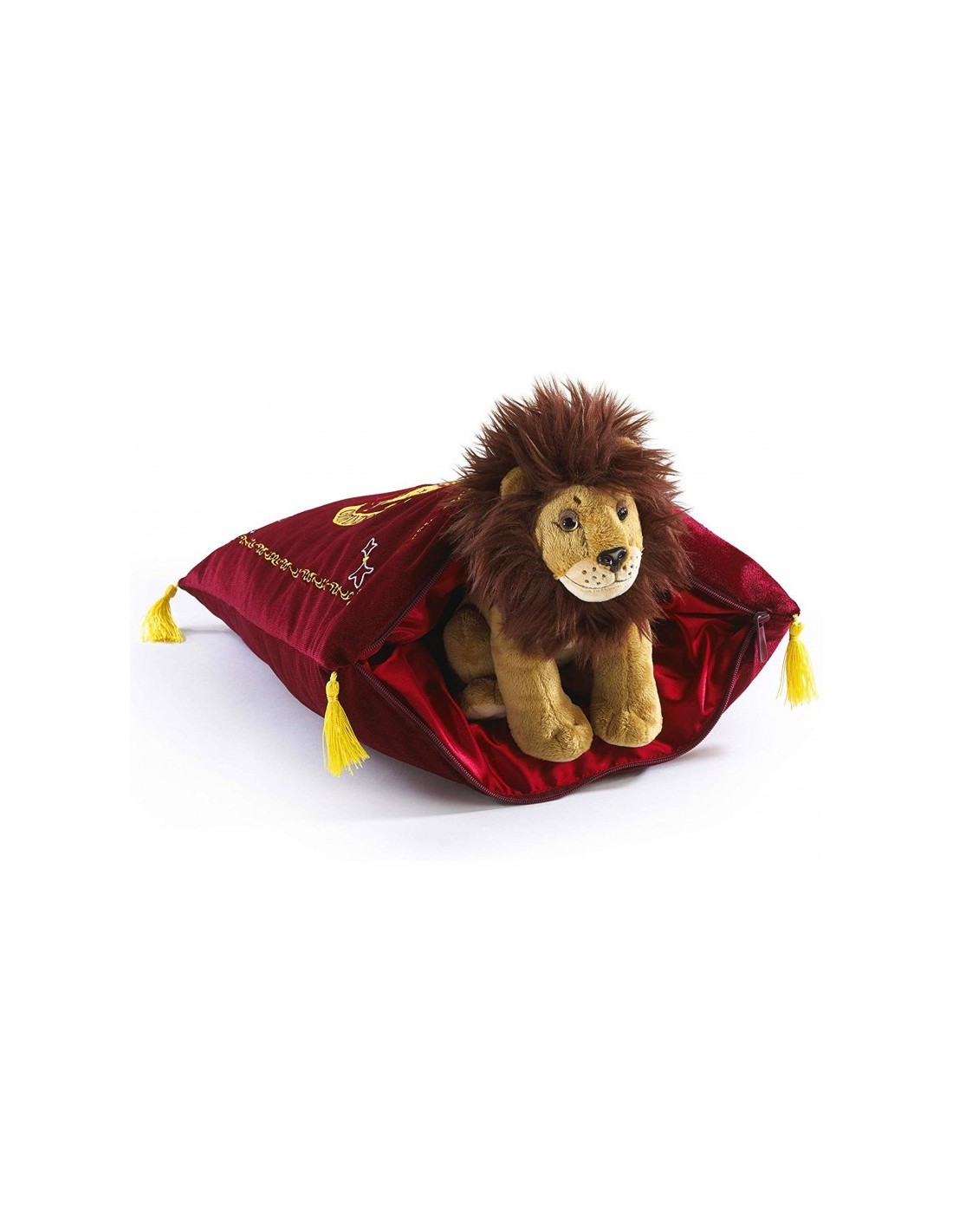 Este set se compone por un lado de un elegante cojín, con unas medidas aproximadas de unos 31 x 31 x 15 cm, y el escudo de Gryffindor reproducido con todos los detalles del original, mientras que en su interior podrás encontrar un precioso peluche de un león, el animal representativo de la casa Gryffindor.
