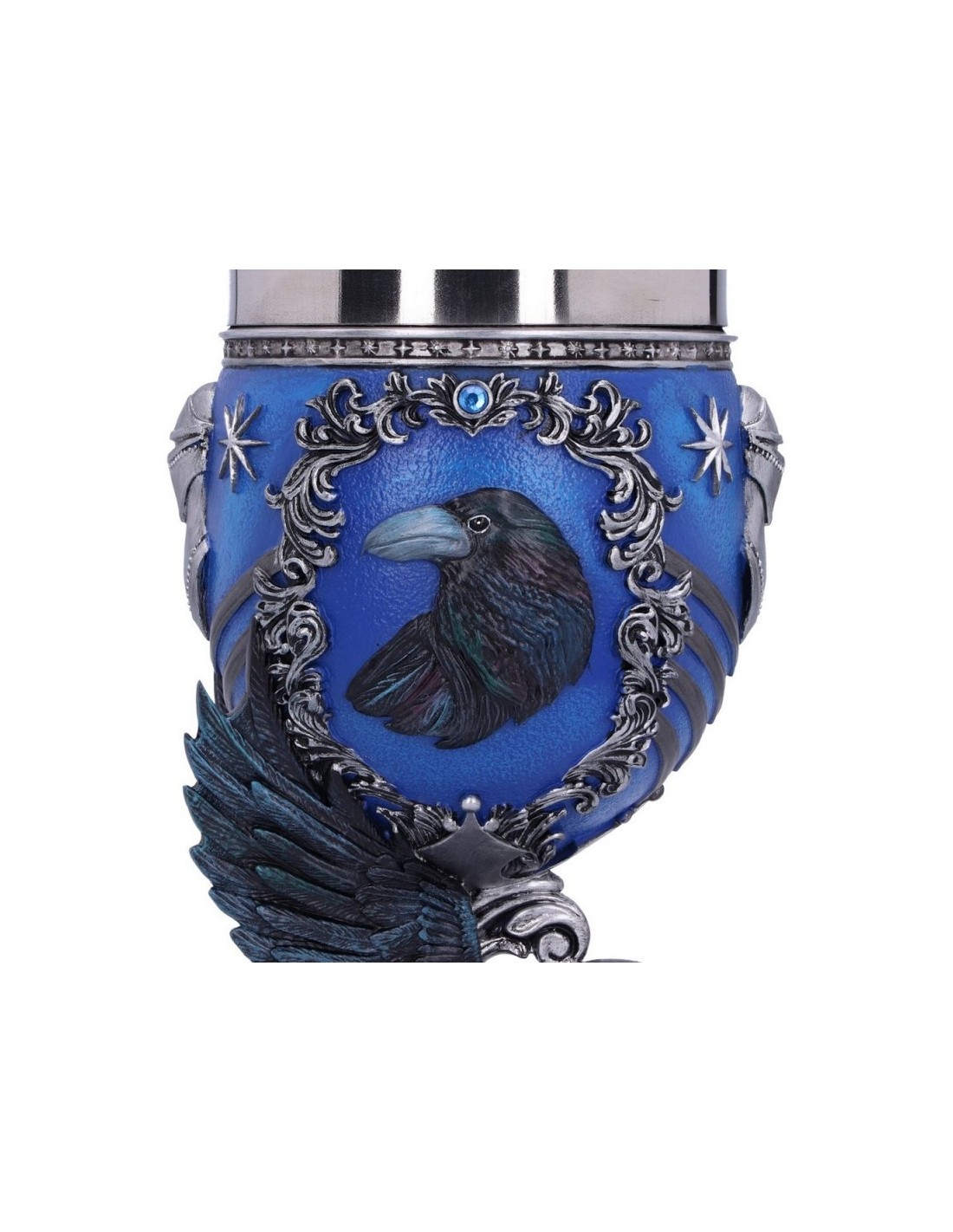 Un artículo fabricado en una perfecta combinación de acero inoxidable y resina y mide aproximadamente 19 cm de alto. Pero sin duda lo más sorprendente es su diseño, inspirado en la mítica Casa Ravenclaw de Hogwarts, y una cantidad de detalles absolutamente espectacular. Además, ha sido pintada a mano cuidadosamente.