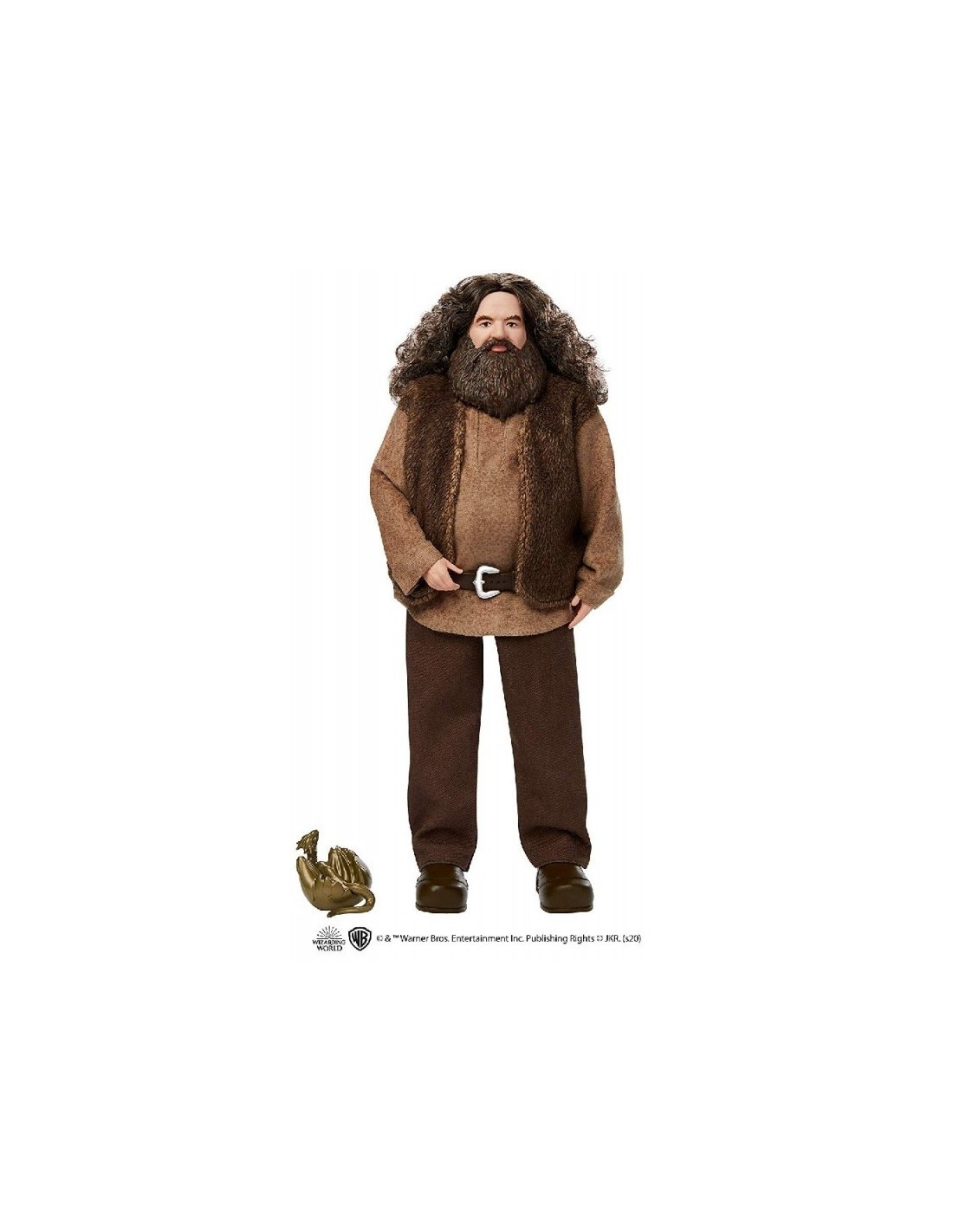 Este muñeco de hagrid tiene un aspecto idéntico al de su personaje de la emblemática saga de películas e incluye detalles como la barba y el pelo rizado. Igual que en la saga de Harry Potter, viste su característica camisa con cinturón y chaleco, pantalones y botas.
