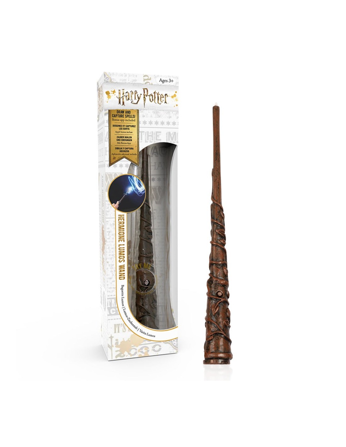 Réplica de la varita mágica de Hermione Granger, con una luz led potente para que te grabes en la APP realizando los hechizos más mágicos de la saga.