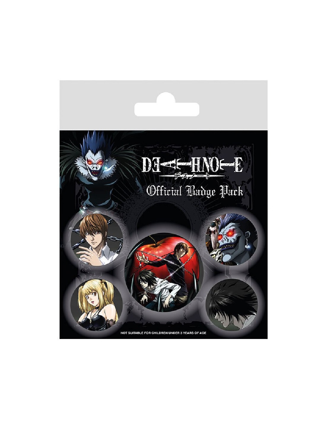 Juego de chapas Licencia Death Note (Personajes) 1 de 38 mm. de diámetro y 4 de 25 mm.