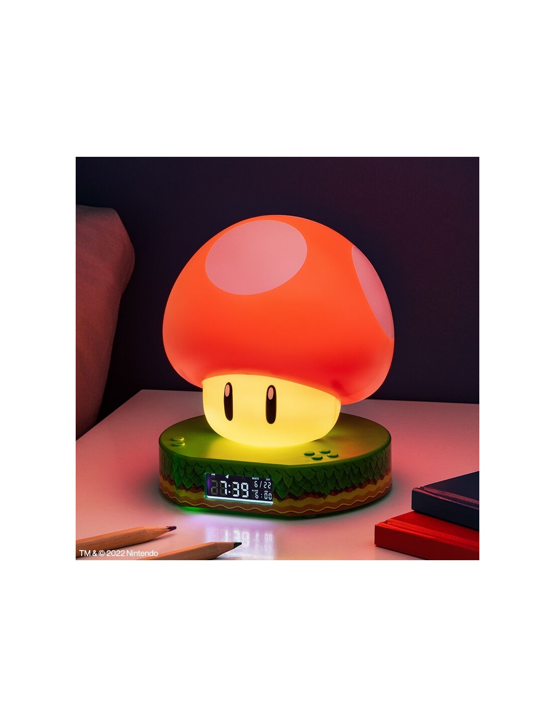 PALADONE - Reloj despertador Super Mario (Super Mushroom) Tamaño: 11,2 x 12 x 12 cm. Fabricado en PVC