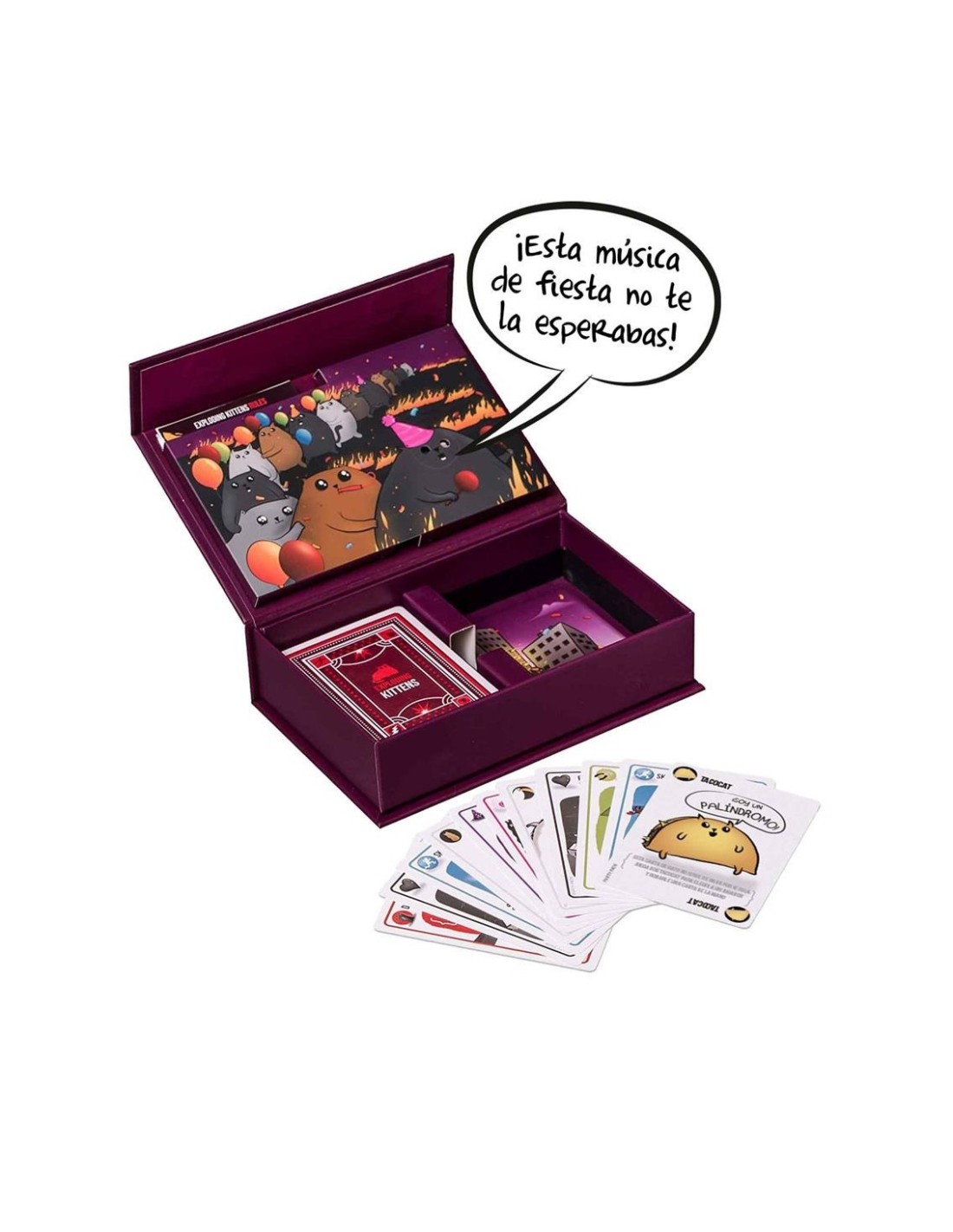 La versión de Exploding Kittens más recomendable para fiestas, hasta 10 jugadores con nuevas mecánicas de juego para incorporar tantísimo gatito y en una entrañable caja musical...