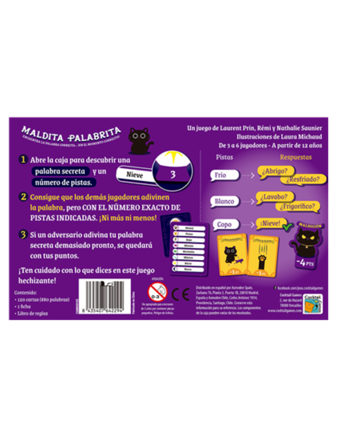 120 cartas (880 palabras) • 1 ficha • Libro de reglas
