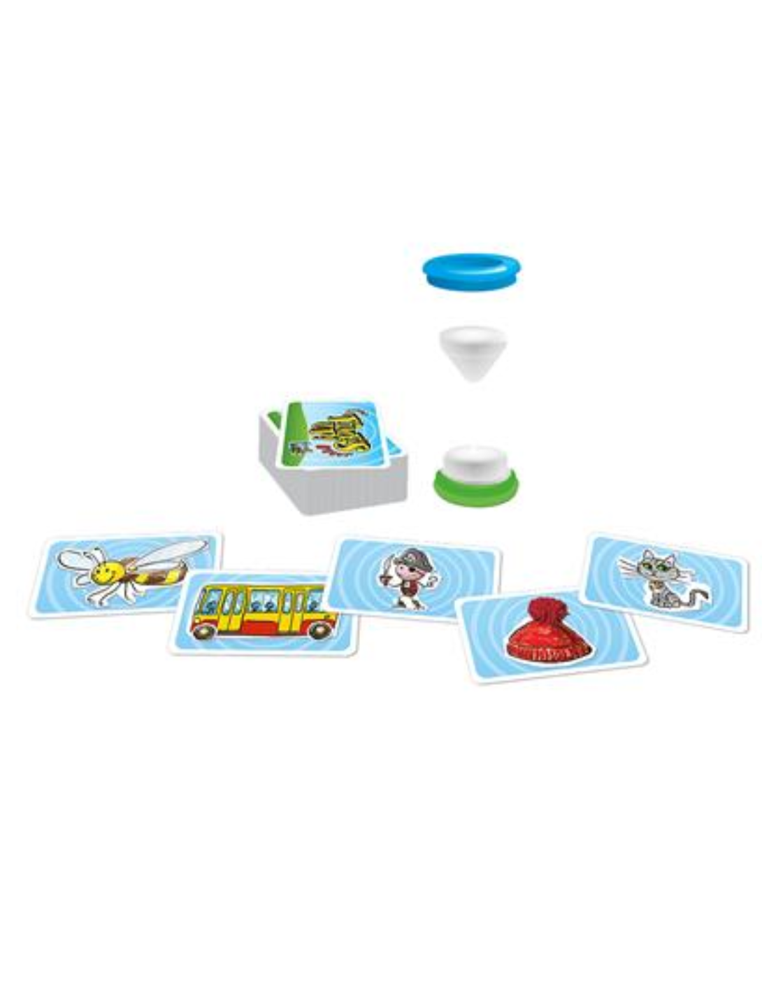 220 cartas, 1 Reloj de arena, 1 Bolsa, Reglas y 1 Tabla de anotación.