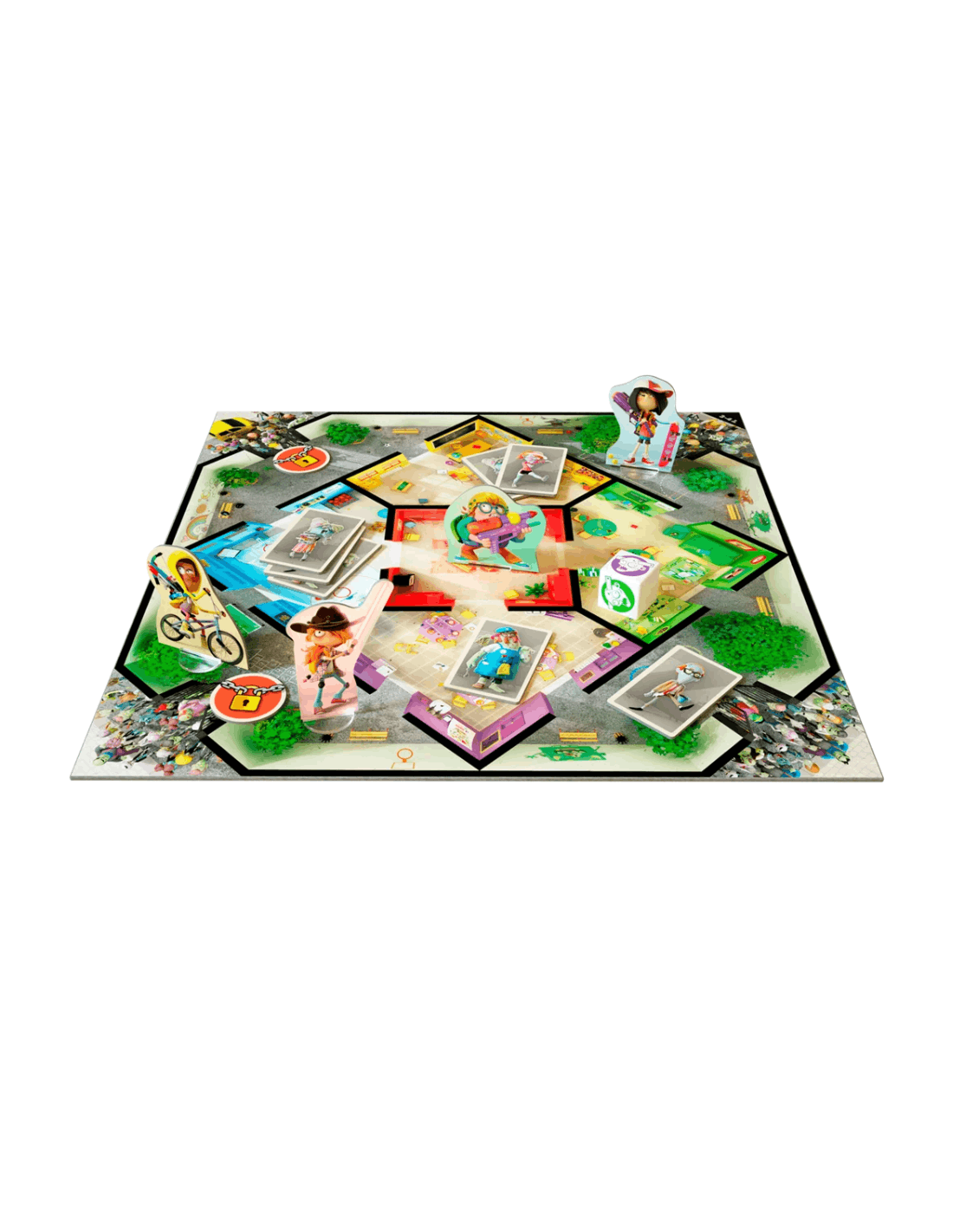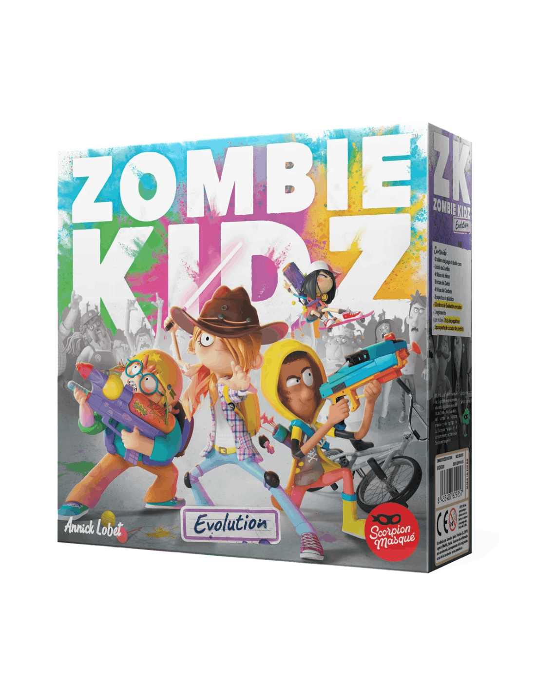CONTENIDO 1 tablero de juego de doble cara, 1 dado de Zombis, 4 fichas de Héroe, 8 fichas de Zombi, 4 fichas de Candado, 8 soportes de plástico, 13 sobres de Evolución cerrados y 1 reglamento (que incluye 1 hoja de pegatinas y 1 pasaporte de cazador de zombis).