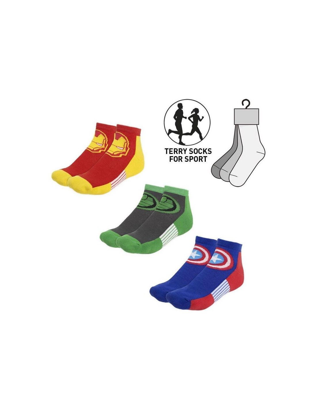Pack de calcetines tobilleros Vengadores (Símbolos) 90% Algodón 5% Poliéster 5% Elastano. Tallas: 41-46