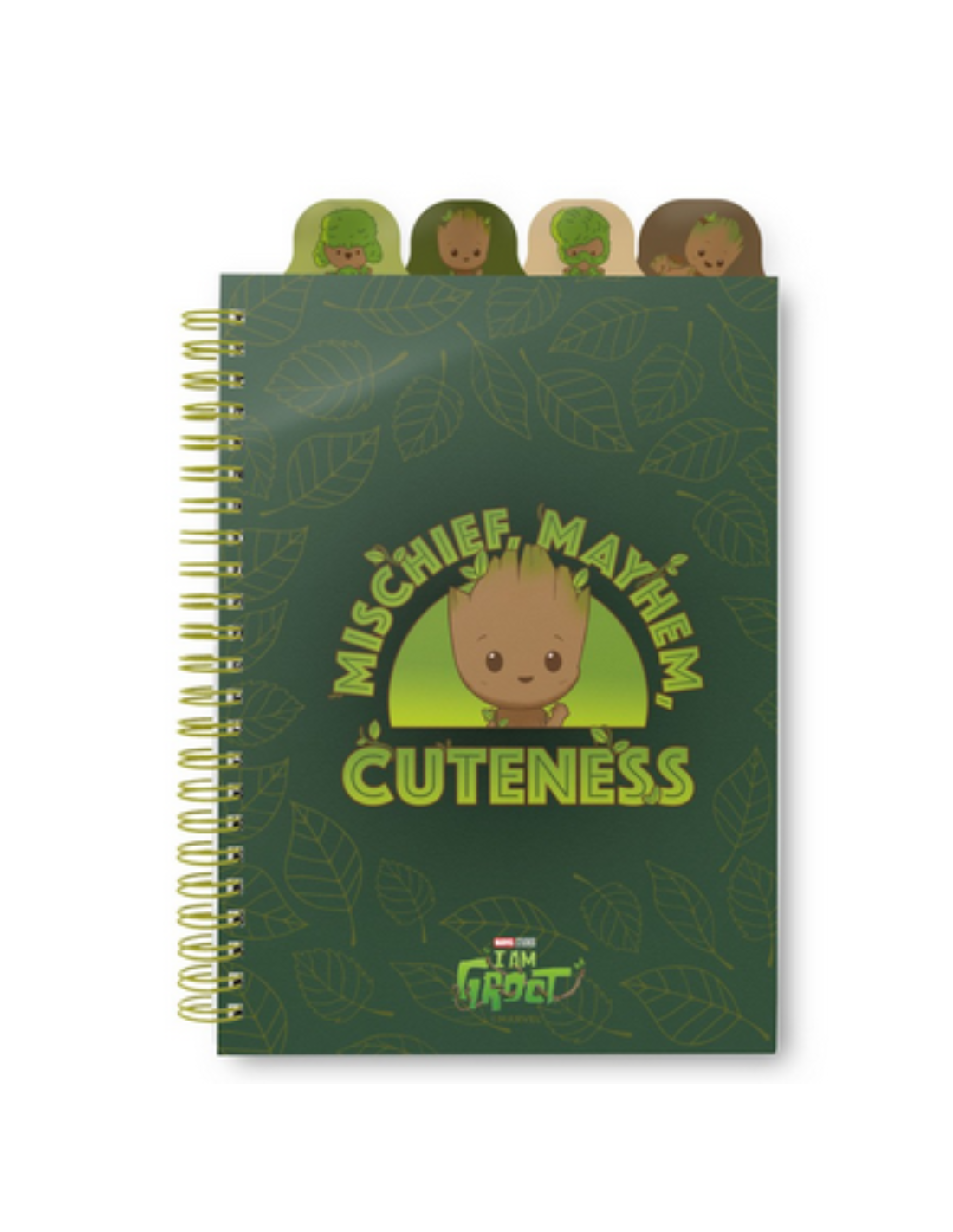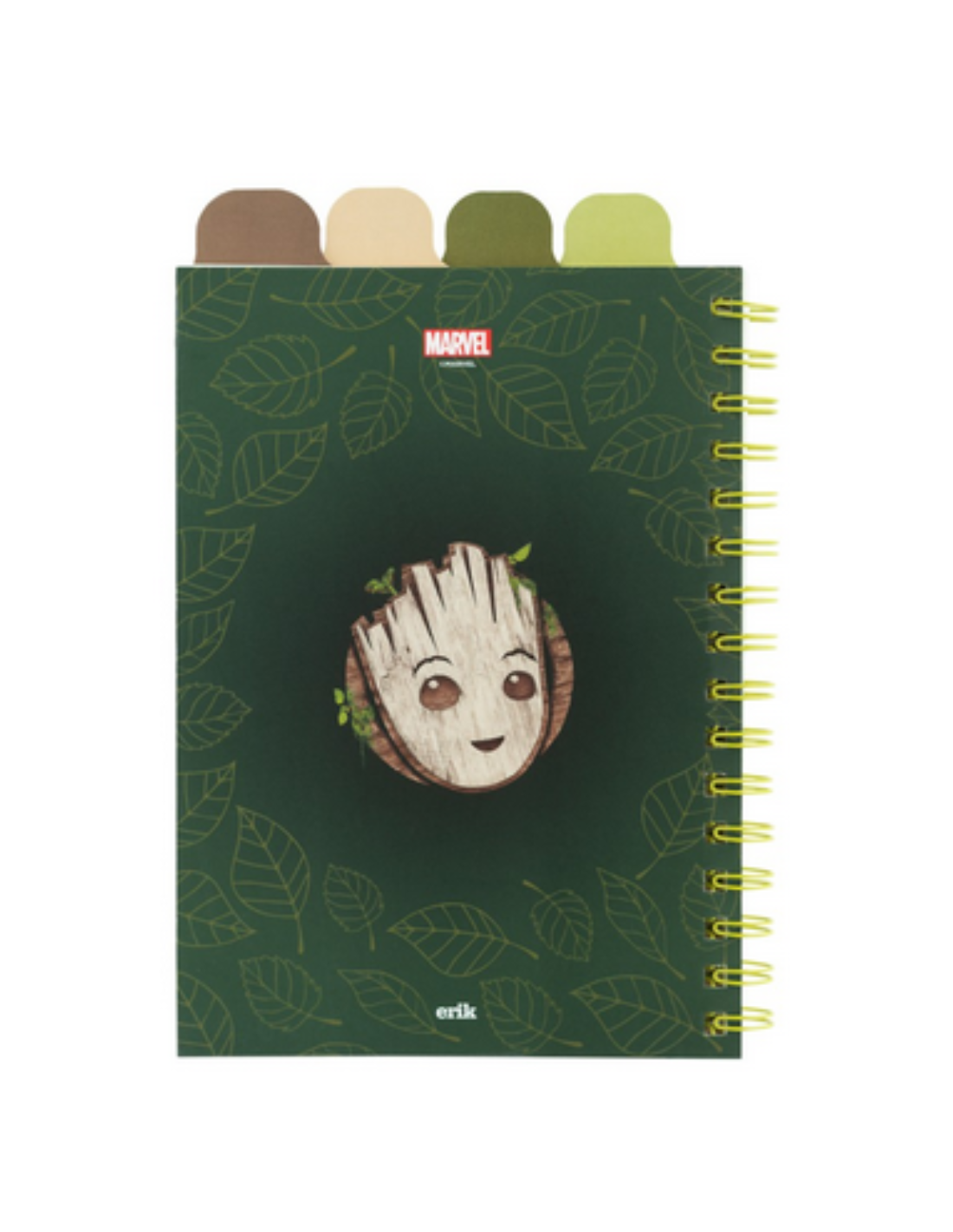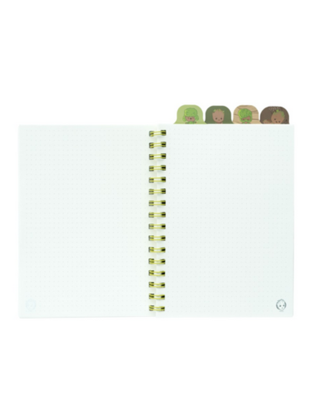 Cuaderno formato A5 (14,8 x 21 cm) con cubierta fabricada en polipropileno de 0,5 mm y encuadernación con wire-o. Incluye 4 separadores de polipropileno de 0,5 mm con troquel superior y 80 hojas (160 páginas) de papel de 80 g/m² con interior personalizado.