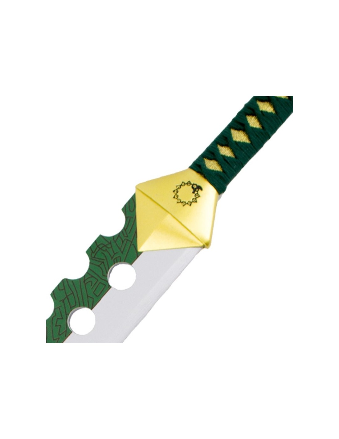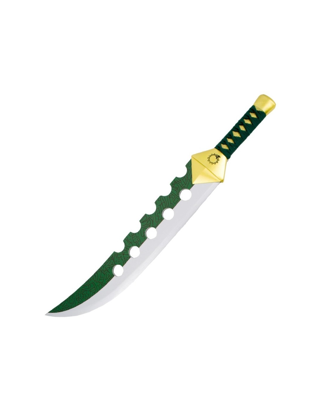 Espada demoníaca Lostvayne de Seven Deadly Sins, Modelo No oficial, con un tamaño total 70 cm, hoja de bambú con con detalles verdes y corte en satinado y funda forrada de polipiel verde.