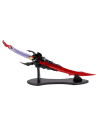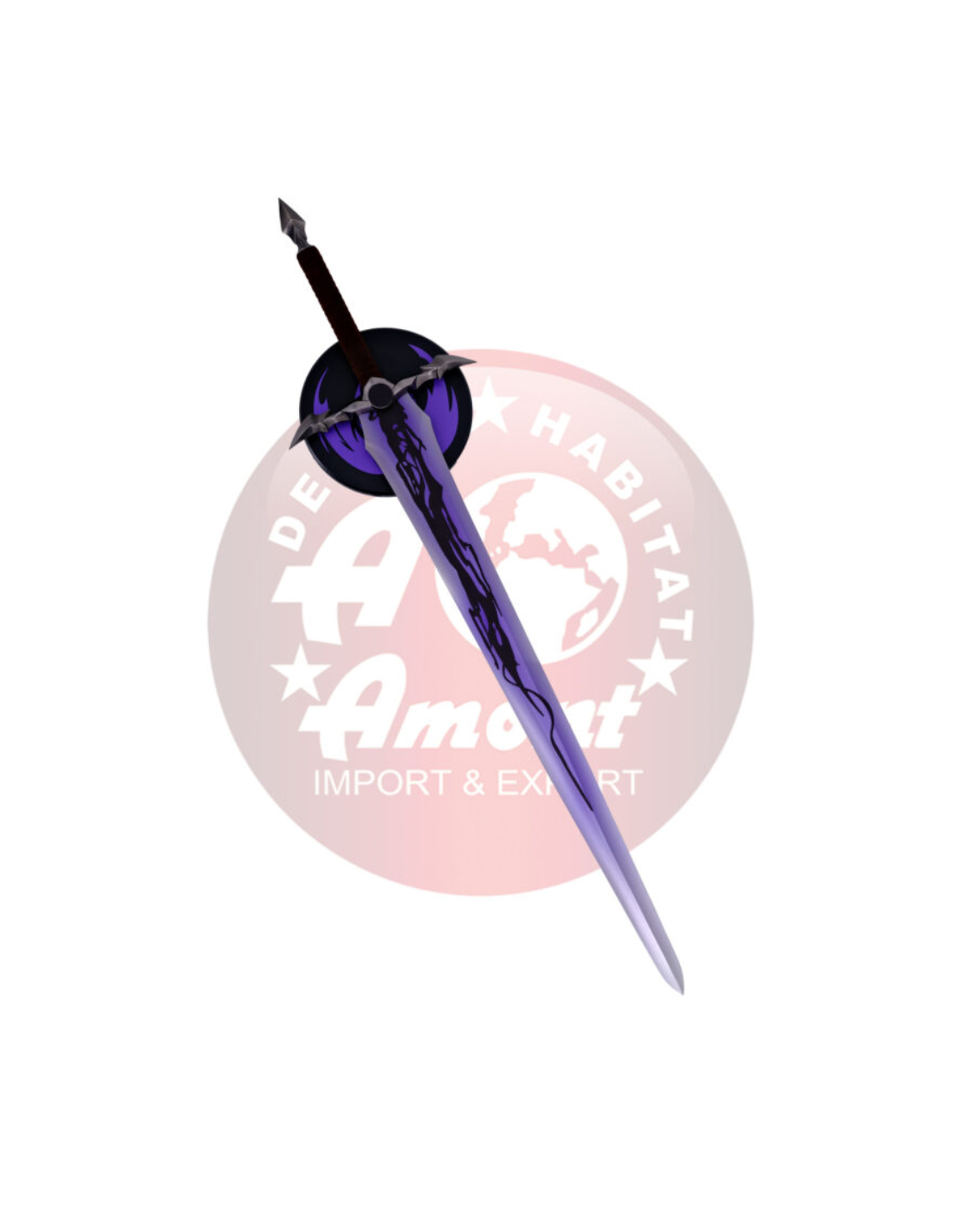 Espada larga del rey demonio, empuñada por Sung Jin-Woo réplica no oficial de 118.5 cm hoja de acero acabada plata con detalles negros y lilas, mango acabado en marrón, guarda y pomo metálicos acabados en níquel, con peana para colgar.