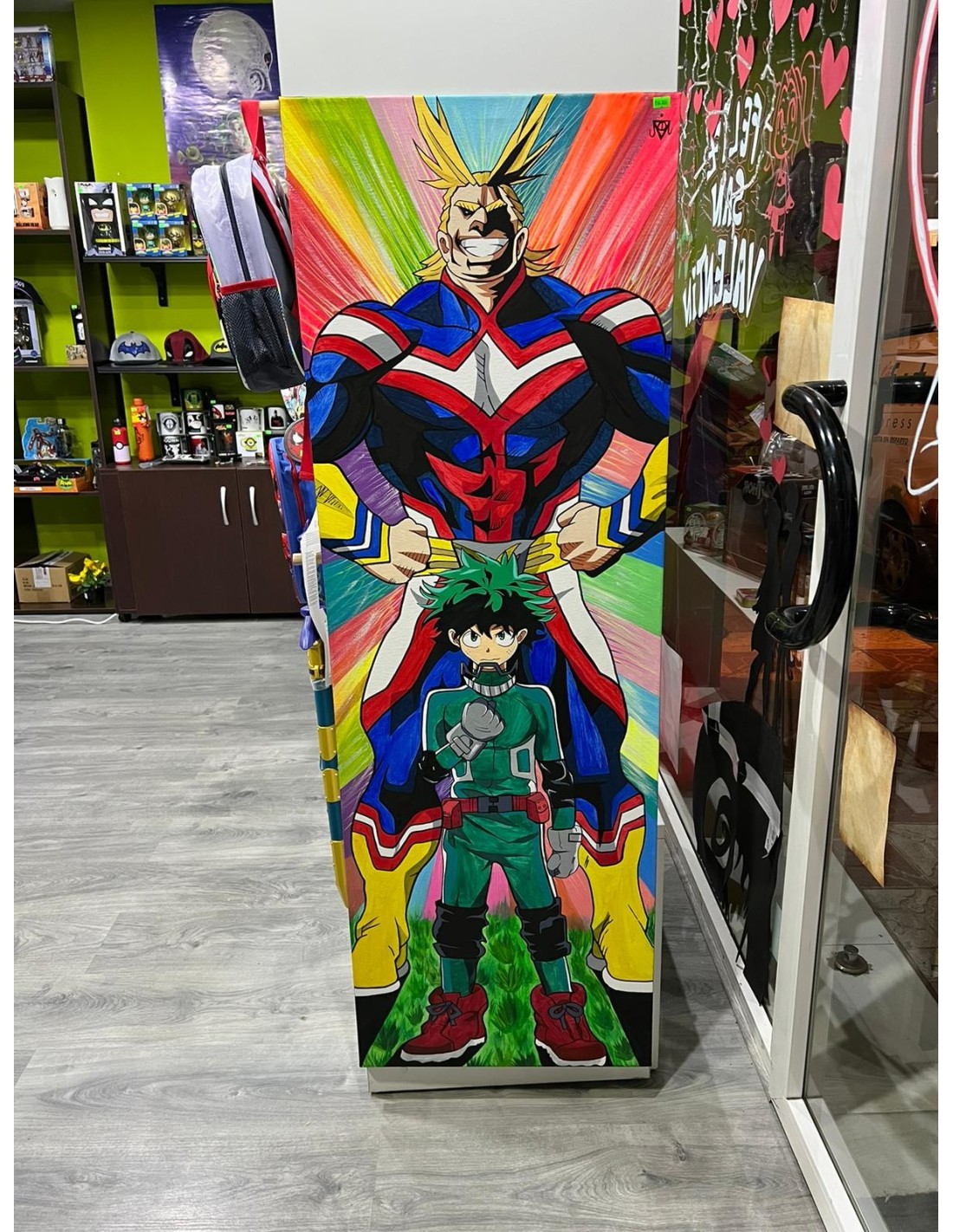 Lienzo pntado a mano de My Hero Academia All Might y Deku. Mide 150x50cm.