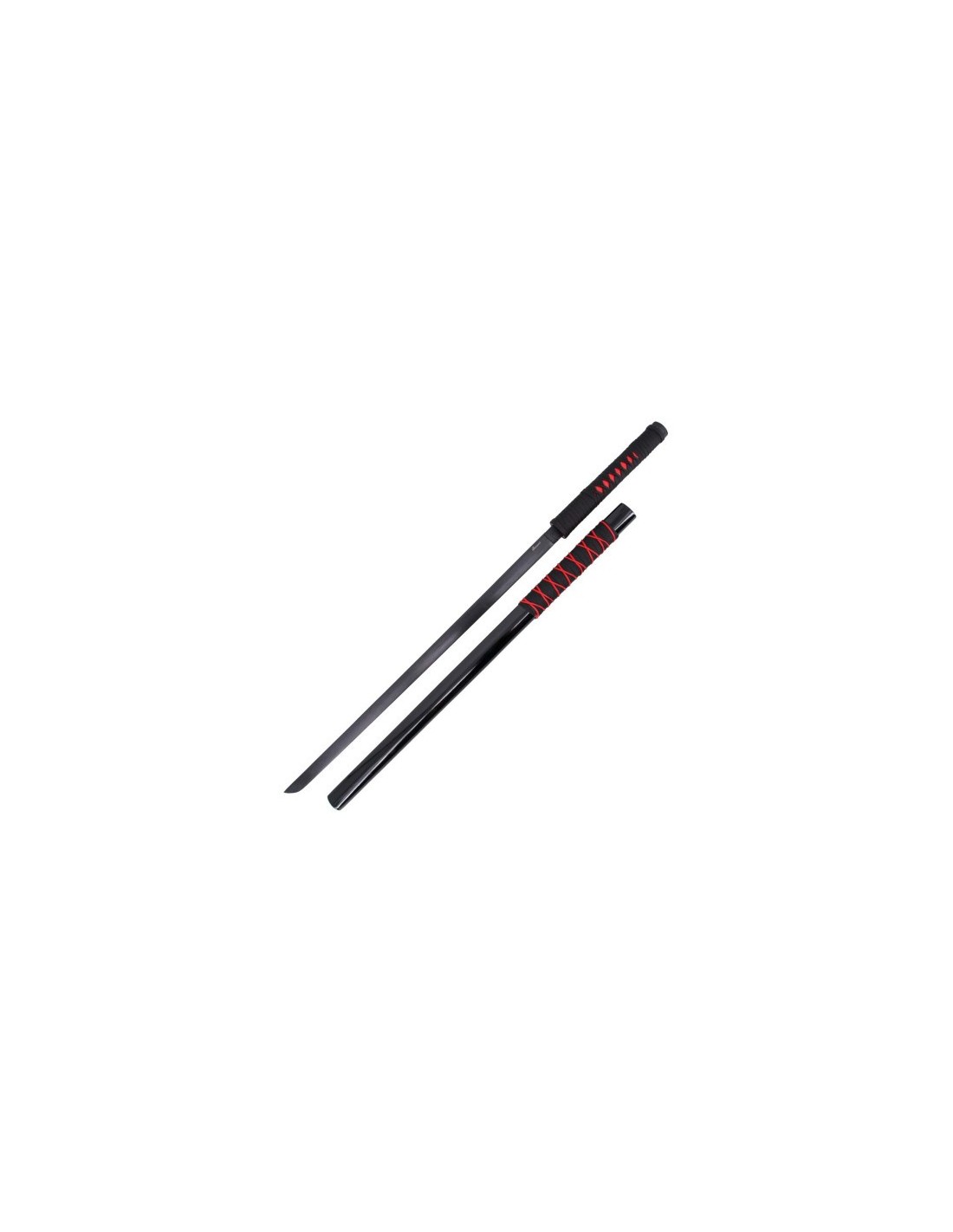 Katana de Kakashi Hatake de Naruto réplica no oficial de 102 cm, hoja de acero negra, vaina negra lacada con encordado negro y rojo, mango encordado negro e imitación de piel de raya en rojo