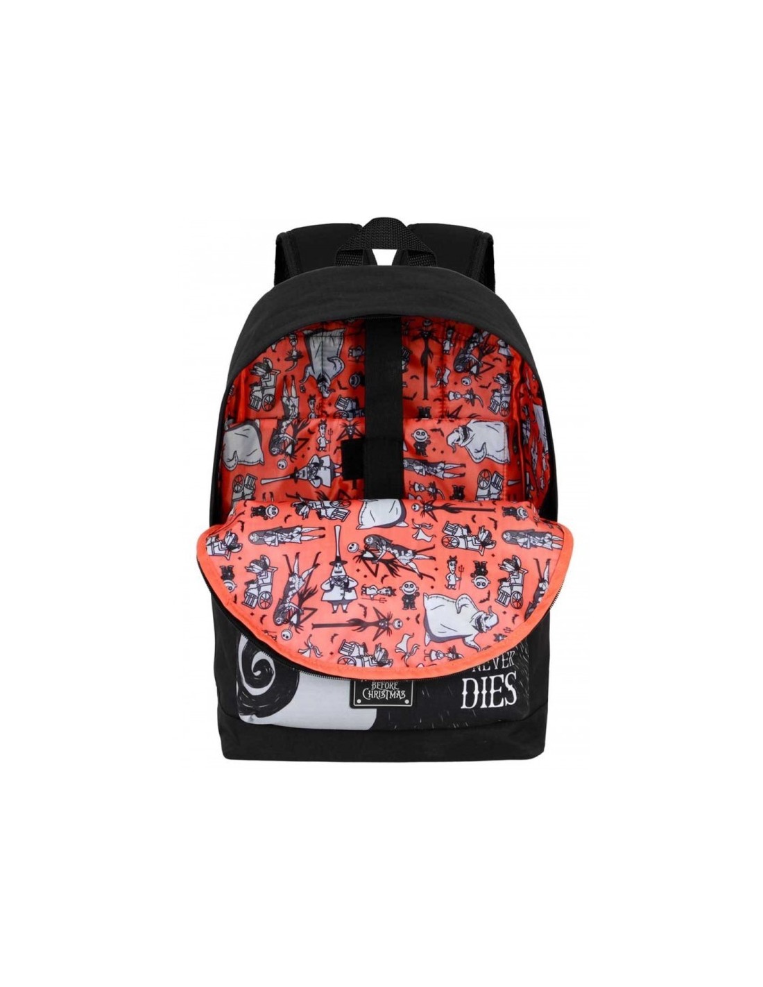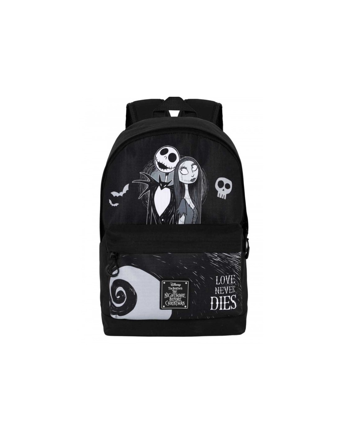 Mochila de Pesadilla Antes de Navidad Jack y Sally adaptable a carro con un compartimento y un bolsillo frontal con forro interior