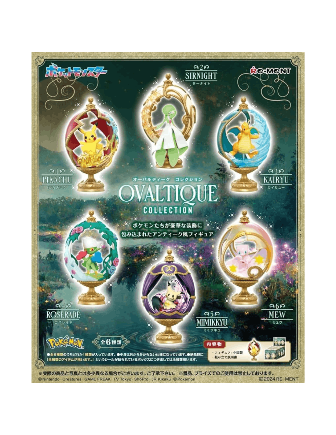Colección de mini figuras oficiales Pokémon de la línea Re-Ment con diseño elegante tipo vitrina. Cada figura tiene gran nivel de detalle y acabado premium, ideal para coleccionistas o decoración.