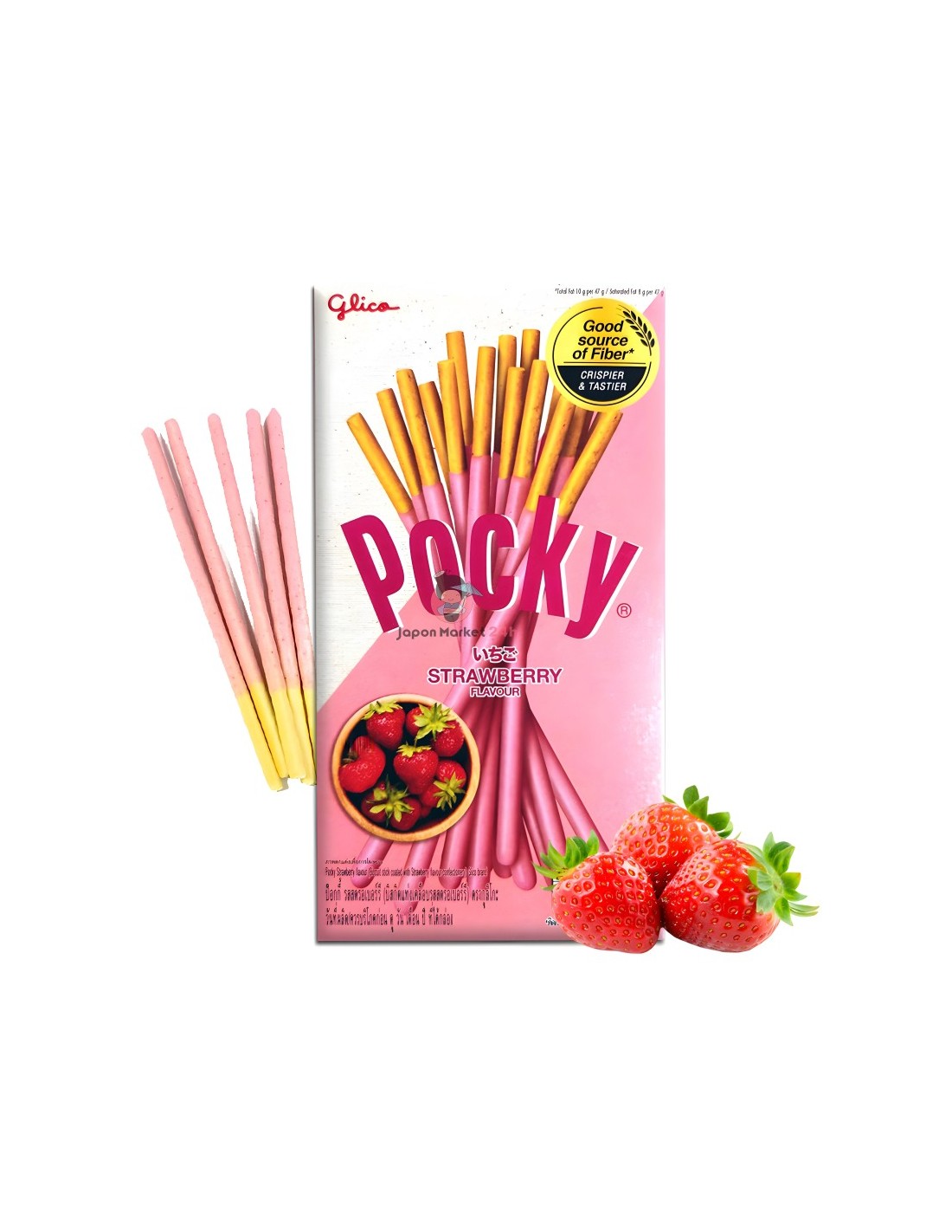 Galleta: harina de TRIGO integral, extracto de MALTA, LECHE, sal, gasificante (E500), emulgente (E322 (SOJA)), levadura, azúcar, aceite de palma. Glaseado: chocolate blanco (azúcar, aceite de palmiste, LECHE desnatada, LECHE entera, suero de leche en polvo (LECHE), aceite de palma, emulgente [E322 (SOJA)], aroma de vainilla), espesante (E1412), 0,15% de fresa en polvo, aromas (fresa, mantequilla (LECHE)), colorante (E120). Atención. Puede contener ALMENDRAS.
