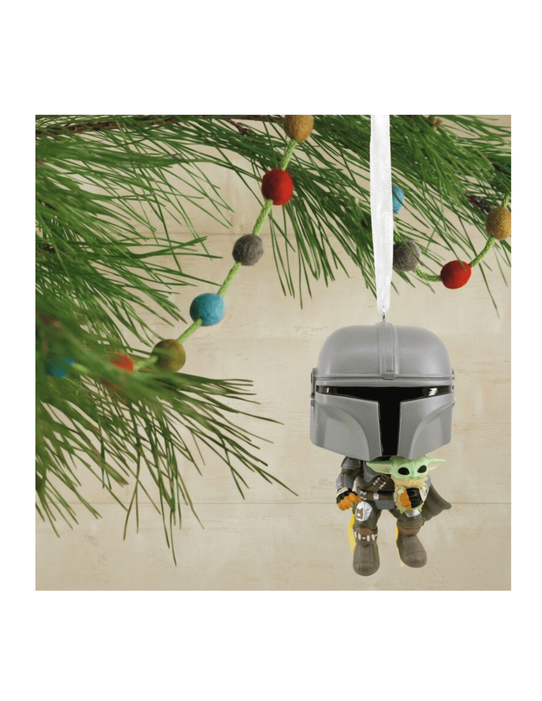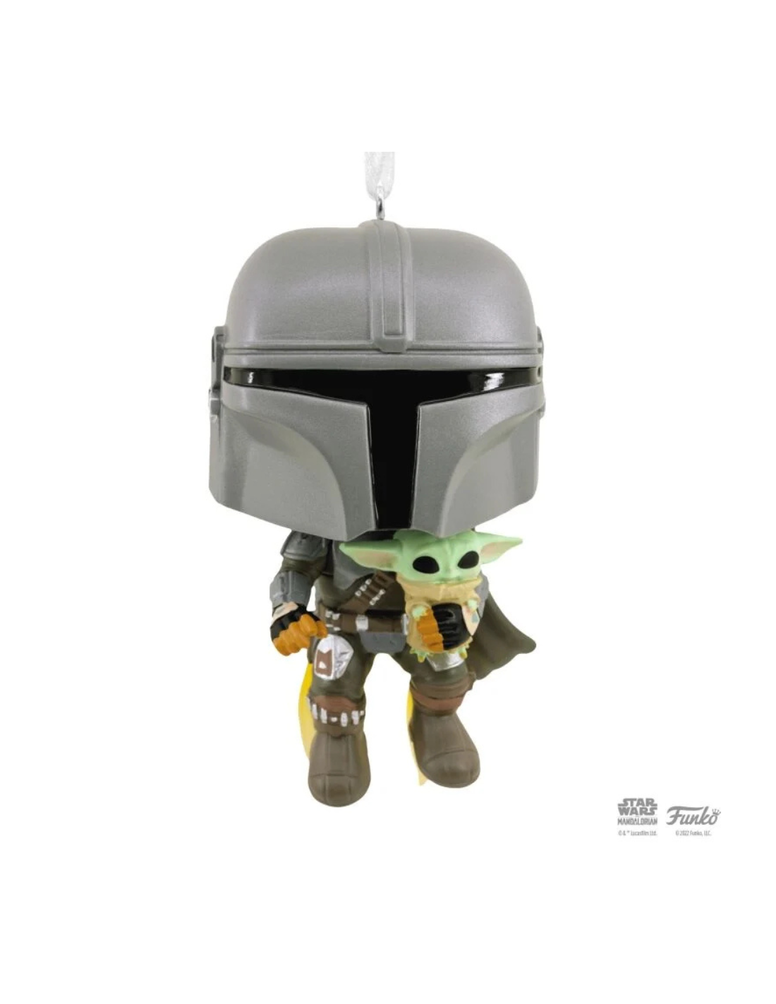 Hallmark by Funko presenta esta figura decorativa Funko Pop! de Mandalorian con Grogu. La figura mide unos 8 cm de alto y está fabricada en resina. Viene con un colgante de tela sujeto a la cabeza para que lo puedas colgar donde más te guste, de decoració