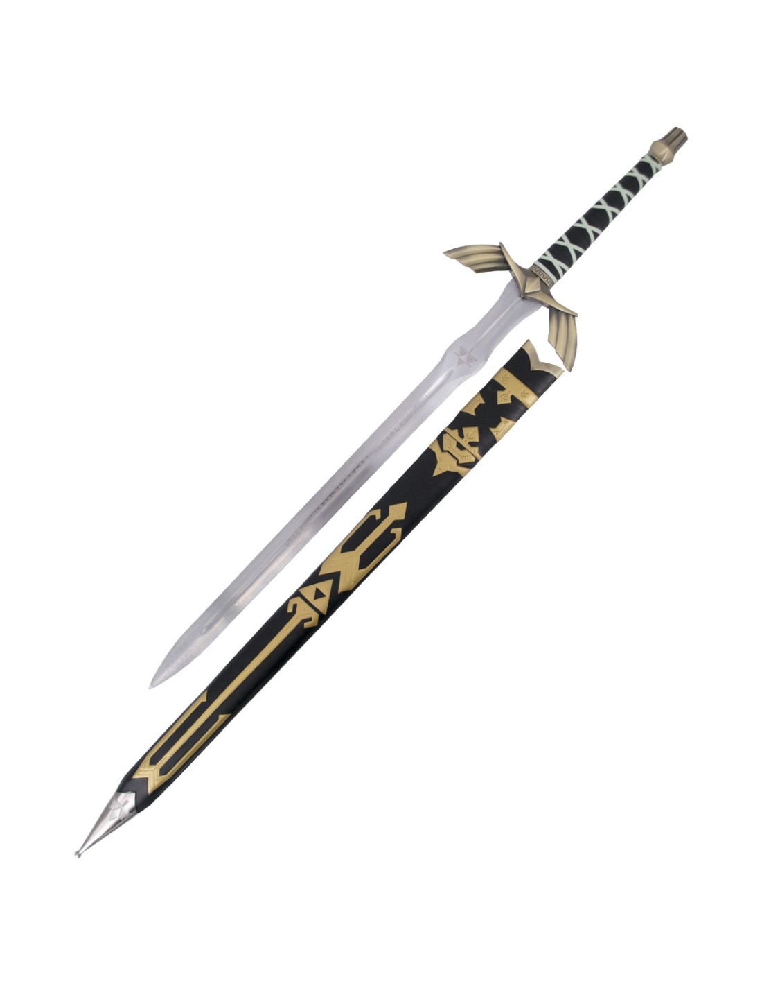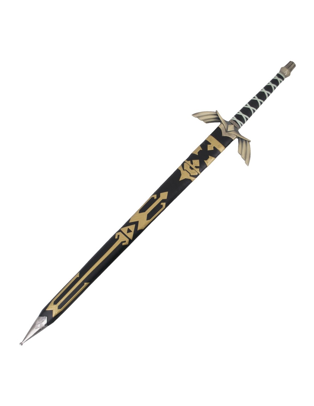 Espada Modelo de Legend of Zelda, Modelo No oficial, con un tamaño total 126,7 cm, hoja de acero con grabado y funda forrada en polipiel negra con detalles en dorado.